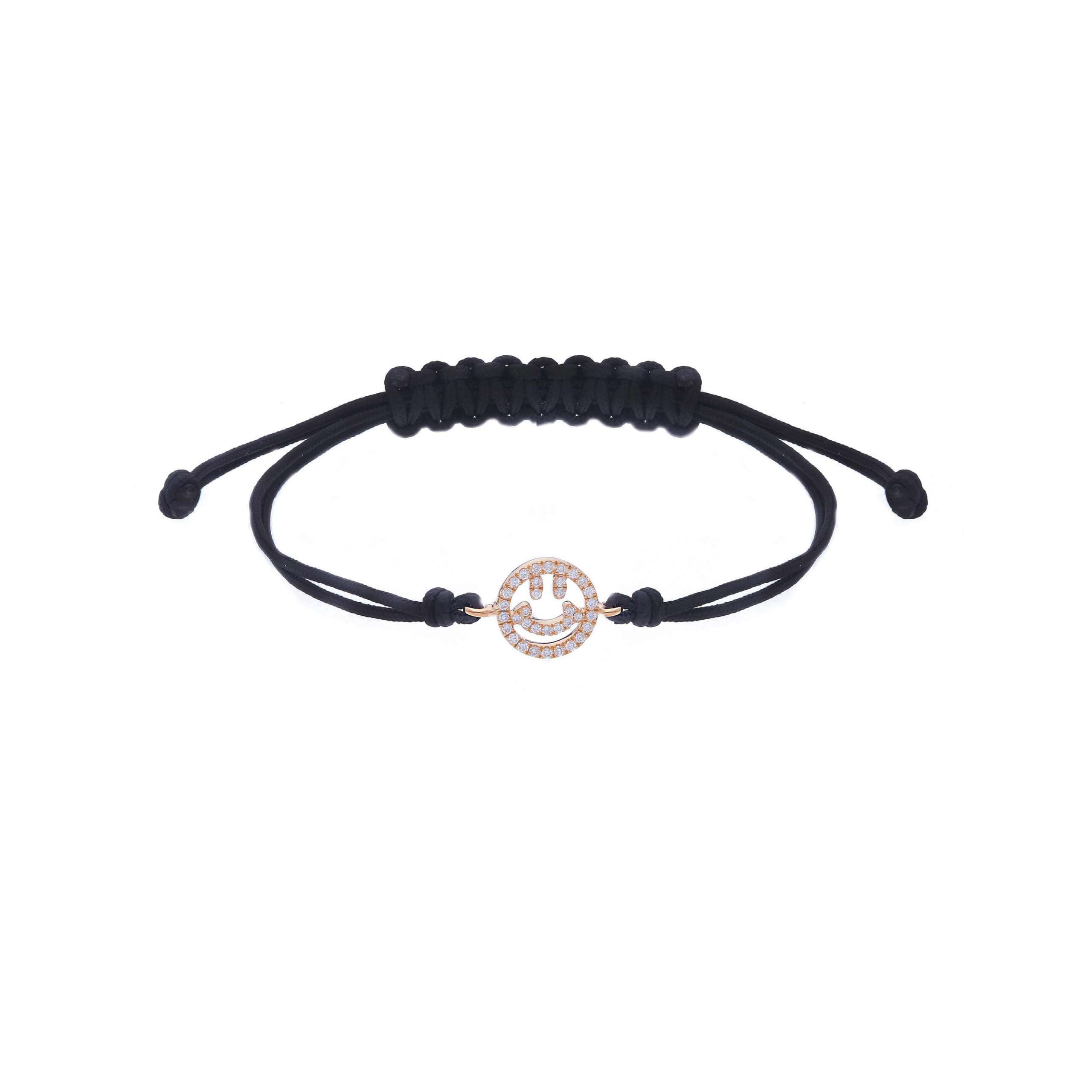 Bracciale Smile in oro rosa 18k (750/1000) e brillanti bianchi 0.13ct e cordone in cotone setificato.